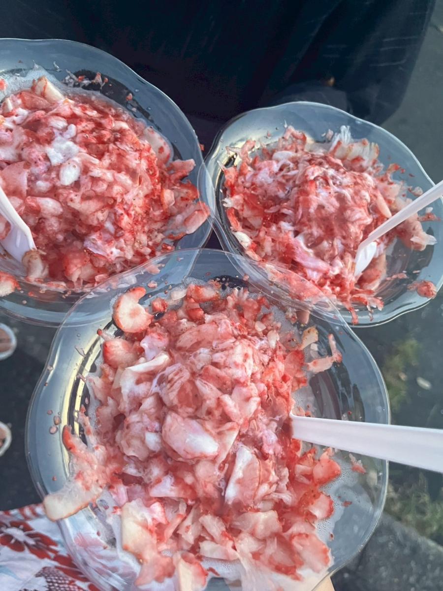 キッチンカーは河川敷付近には10台程度出店しており、かき氷やチョコバナナなどのお祭り定番はもちろんハンバーガーやケバブなど、キッチンカーとしてはめずらしいお店も並んでいました!!また、河川敷からは少し離れた川原町や大渡橋付近にも屋台が出店していました。そちらも多くのお客さんでにぎわっていました。