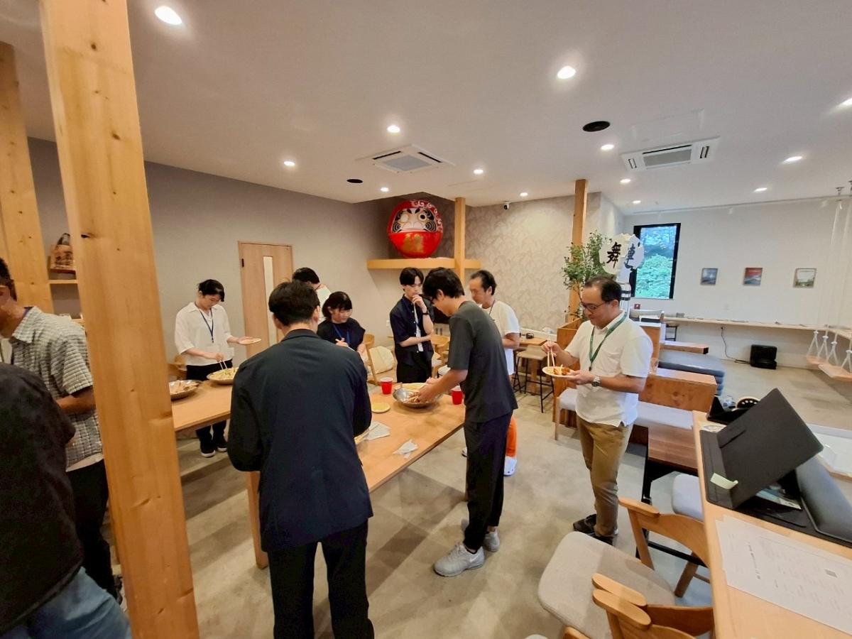 1日目の最後には、懇親会が開かれ、経営者の方も含めた参加者全員で軽食を楽しみながら話をしました!