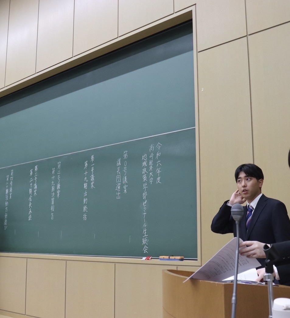 大学では高崎経済大学地域政策学部ゼミナール協議会に所属しており、2年次~3年次にかけて協議会の会長を務めていました。